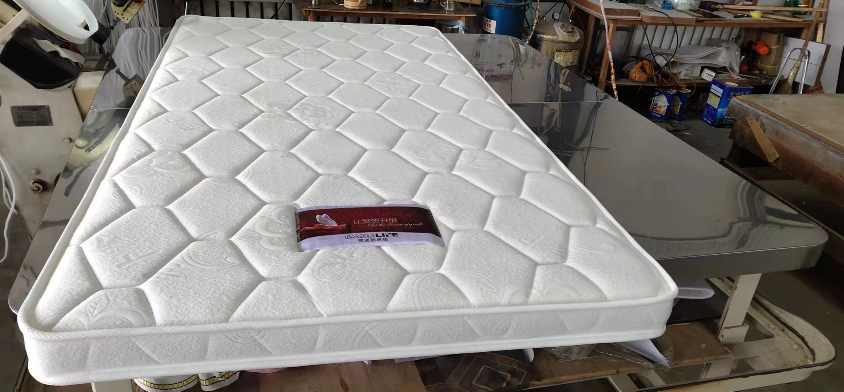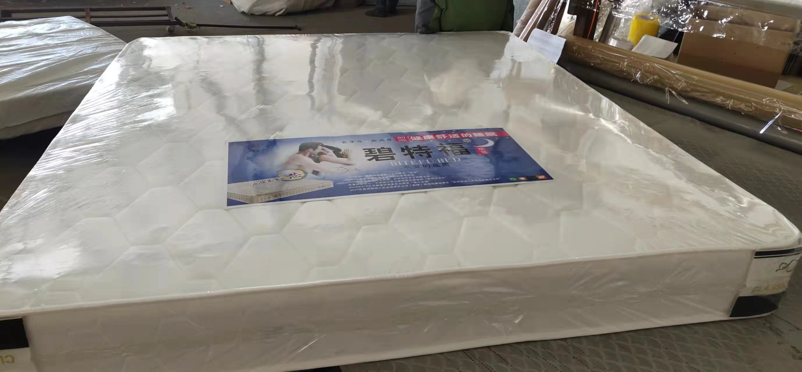 我廠還有自己獨(dú)立的床墊品牌,比特福,美迪麗,生產(chǎn)13種床墊,特尺加工。同時為了方便于每個客戶的需求,我們還代銷床墊輔料,裥花面料,各式花樣。